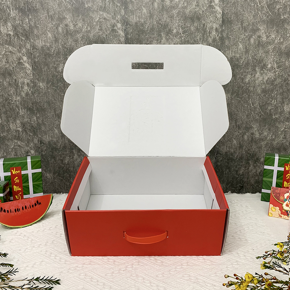 Hộp đựng quà Tết được làm từ chất liệu cao cấp, bền đẹp, có khả năng chống thấm nước, chống va đập tốt. Điều này giúp bảo vệ quà tặng khỏi hư hại trong quá trình vận chuyển và sử dụng.